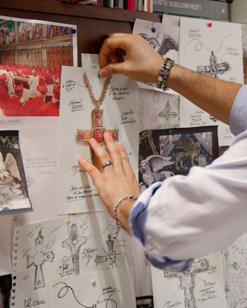Un lavoro straordinario che ha richiesto la realizzazione di oltre 500 pezzi unici, tra cui croci cardinalizie, anelli, spille e gemelli.